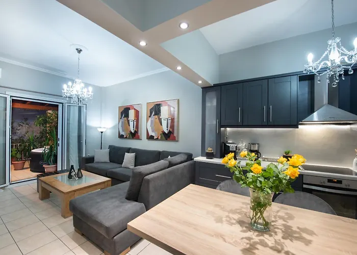 Oferind facilități de spa, cum ar fi un jacuzzi și o cadă cu hidromasaj, Luxury Katrinas Apartment With Outdoor Jacuzzi Corfu de 75 m², este situat la 7 minute de mers pe jos de Corfu Golf Club. Muzeul Kapodistrias se află la 4.6 km de apartamentul cu 1 dormitoare, iar stația de autobuz Platytera se află la câțiva pași de proprietate.